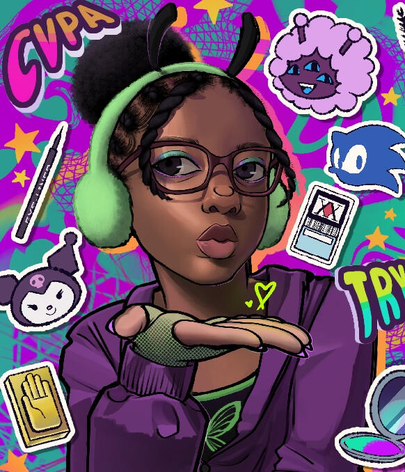 I’m a 2D animator and illustrator pursuing my Bachelors degree in Animation and Game Arts. Despite going into college primarily for 2D, I gradually developed a love for 3D animation, sculpting, and modeling, and will continue to integrate those elements with my 2D work. I bring bright neon colors, brash line work, stylized anatomy, and eccentric designs together to create dynamic pieces and stories that explore themes of identity and nonconformity. I take inspiration from visual artists like Kohei Horikoshi, Hirohiko Araki, and Oxalix Figueroa.As a kid, I always preferred animated media over live-action media, but like many other artists, my artistic journey really took off with Sonic fan characters. Nothing was more important to me than being able to make fun, simple comics featuring sonic characters in silly scenarios, and share them with my classmates. High school was when I started getting serious about experimenting with anatomy, artistic identity, and digital art in general. Now, with a Bachelor’s degree in Animation and Game Arts, I hope to create and share stories with complex, intertwining narratives, and compelling themes that feature characters of all kinds of shapes, colors, and sizes.My specialties are 2D character illustration and animation. I partake in prop design and storyboarding to compliment those skills. I’ve also learned 3D modeling/animation for characters, prop, and weapons. My weapons of choice are Ibis Paint X for all 2D still assets and illustration, Adobe Animate for 2D animation, Blender for 3D modeling and 3D animation, and Premiere Pro for video editing. Outside of my coursework, I also freelance as an illustrator, write stories, play videogames, enjoy fashion, and watch anime.